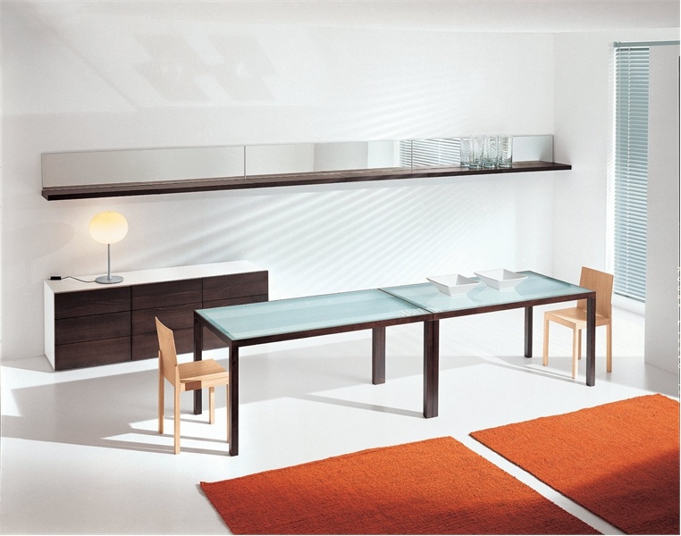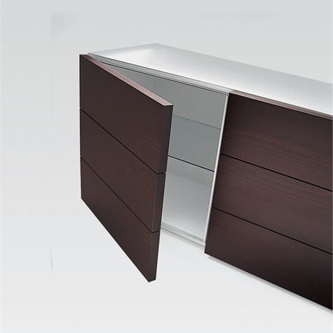 The Comi of drawers from Italian manufacturer Horm. A model with swing doors. The frame is made from solid wood. The surface is treated with glossy varnish. Colors offered in white, black or mocha. Internal filling - glass shelves. Made a chest of drawers in a modern style.