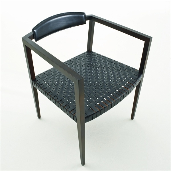 The Bellagio chair from the Italian manufacturer Bonacina Pierantonio. The frame is made from solid wood, upholstery leather. The model with armrests. The perfect choice for terraces in a modern style. Product color black.
