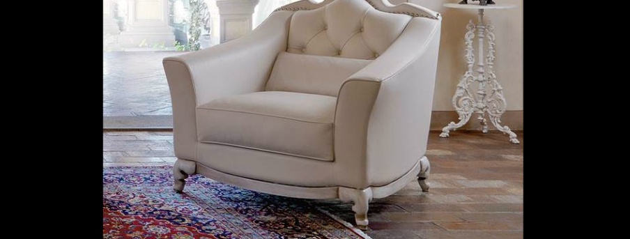 Armchair, from the Italian manufacturer Danti. The frame is made of wood. Upholstered in leather from the company portfolio. The legs are decorated with carvings, the back - stitch. The model is made in classic style.