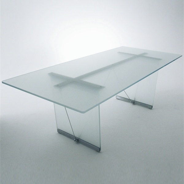 Table Sailor from the Italian manufacturer Bonacina Pierantonio. The frame is made of metal, top and legs glass. The model is rectangular. Table decorate dining room in modern style. Product color transparent.
