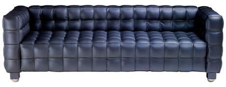 Sofa from Italian manufacturer Art Leather. Model with low backrest and armrests.Frame fully covered in black leather. The internal content is not deformable polyurethane foam. Is practical and compact.