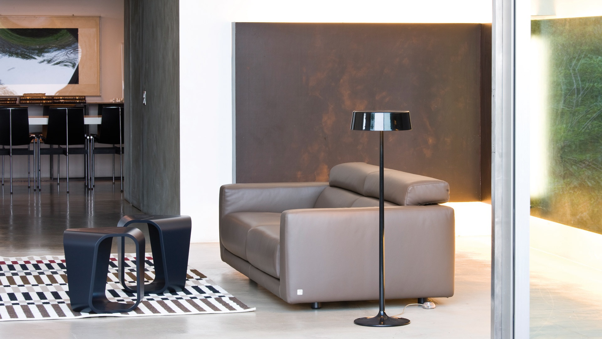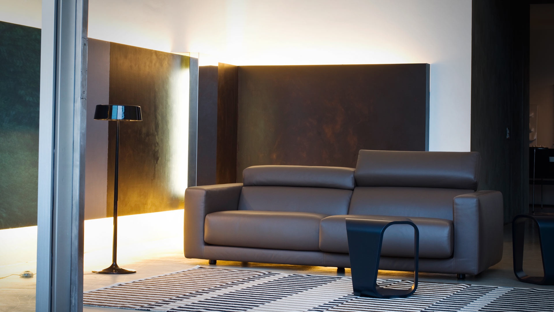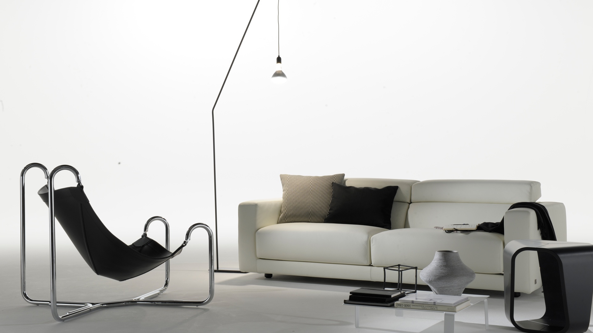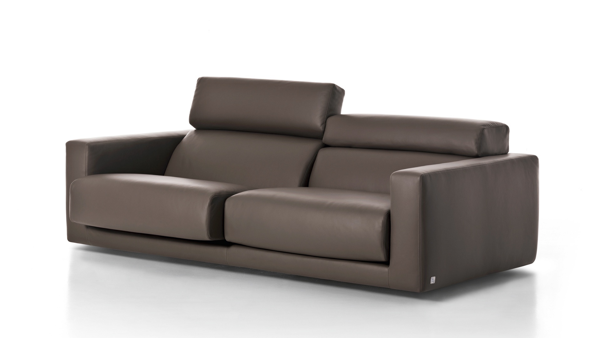 Mike couch Sofa from Italian manufacturer Busnelli. The frame is made from plywood and metal, the filler is not deformable polyurethane foam of different density, upholstered in textile or leather from a range of campaigns. Sofa with extending mechanism that allows you to raise the headrest and increase the depth of the seat. Pretty model for living room in modern style.