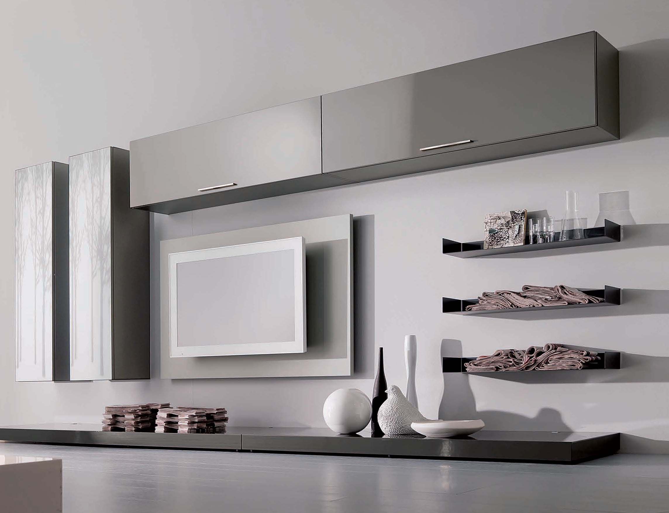Modular storage system from Italian manufacturer Pedretti. The system consists of overhead cabinets and shelves for storage. There is a place for the TV. The frame is made from solid wood. Finish two types of varnish or veneer. Colours in stock.