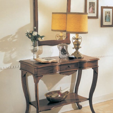 Console And 11, from the Italian manufacturer BL Mobili. The model is made in classic style. Has a small , but handy pull-out drawer with round knob. Material - solid wood. The surface is treated with glossy varnish. Curved legs classic shape