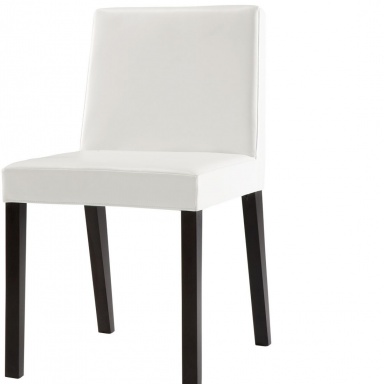 Side chair DORA from French manufacturer Ligne Roset. The frame and legs are made from solid wood. Surface treated high gloss lacquered dark color. Back and seat soft. The upholstery is available from textile or leather. Color option - white, black. The model is made in a modern style.