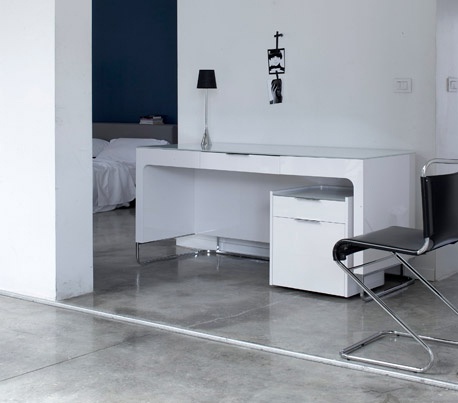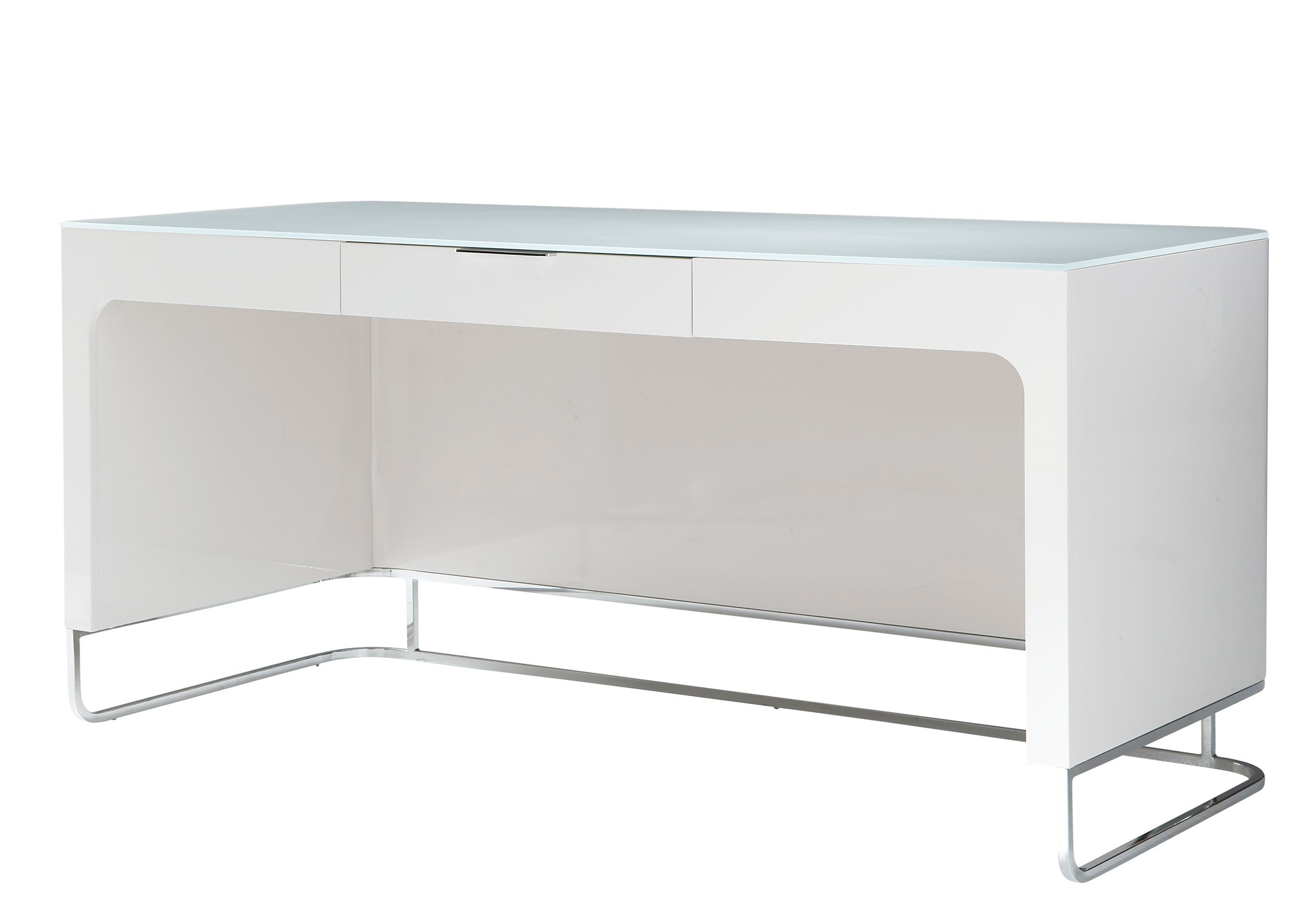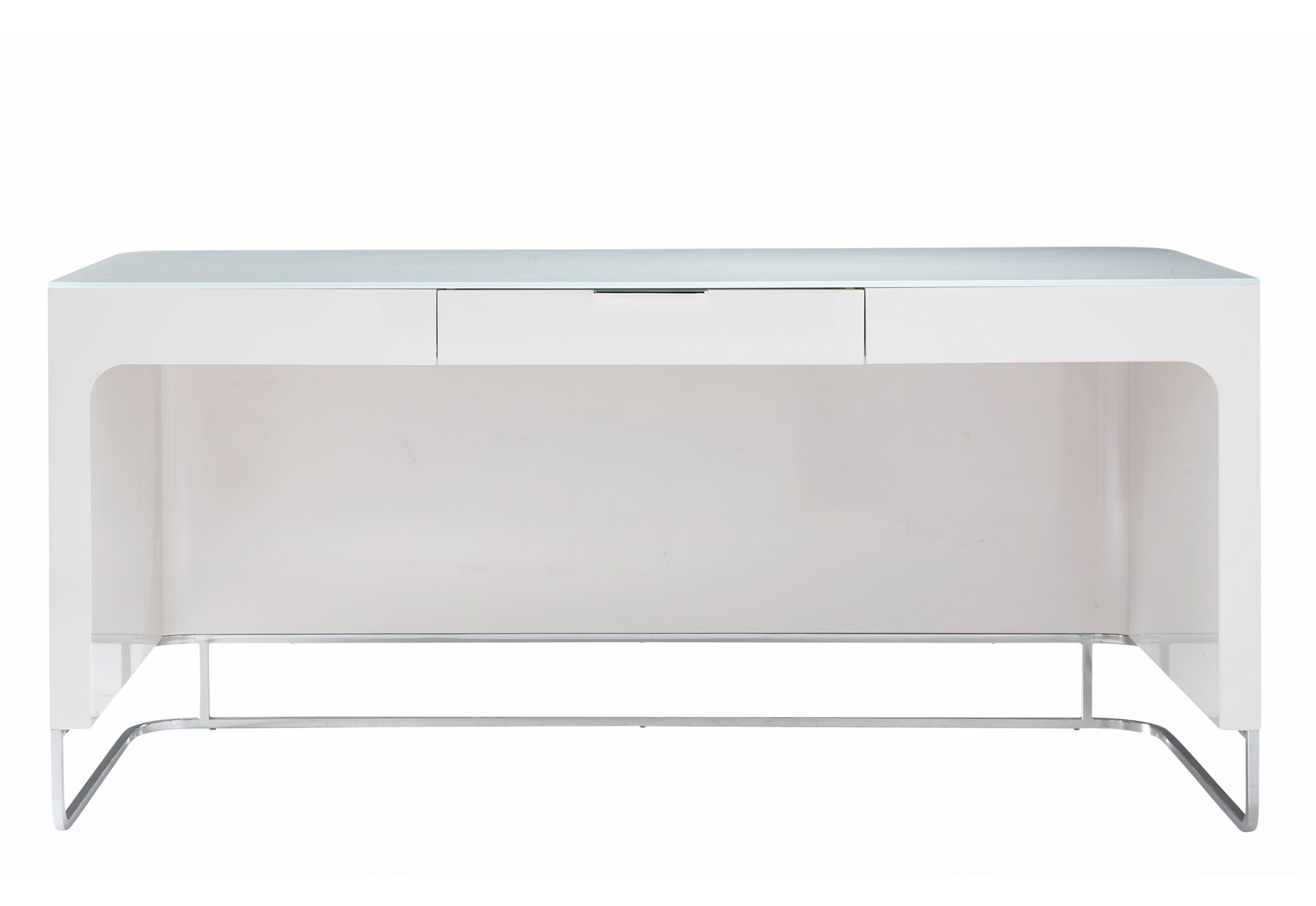 Desk HYANNIS PORT from French manufacturer Ligne Roset. Model from the designer Eric Jourdan (Jourdan Eric) in the style of techno. Complement the modern interior of the office, library or room of a teenager. The model is also suitable for office space. Writing Desk-writing Desk with slide out work surface can be supplemented with Cabinet on wheels with two doors and plenty of shelves and compartments for folders and other office needs. Finish: white shiny lacquer. Frame and stand made of chromed metal. The sizes of the pedestal are shown separately.