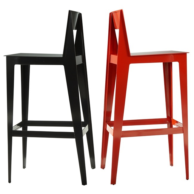 Bar stool Barstool La Pliee from French manufacturer Ligne Roset. The model is made in modern style. The high frame and legs are made from metal. The lacquer finish is offered in white, red or black. The design provides a support for the feet.