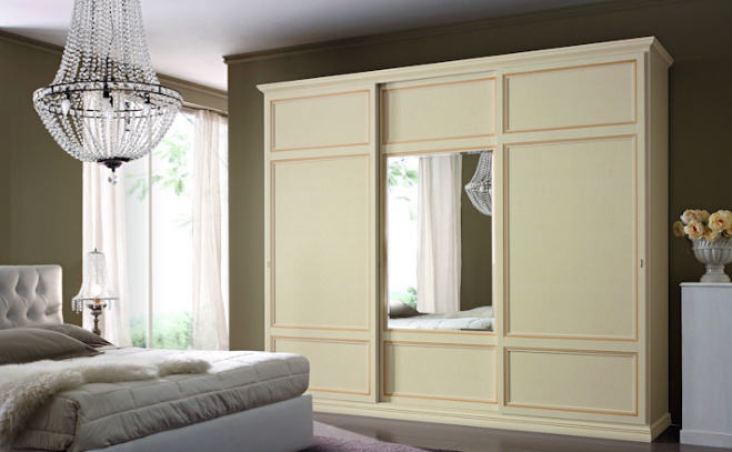 Perla wardrobe, from Italian manufacturer San Michele. The frame is made from solid wood. Finishing varnish from the company portfolio. Color - white. Sliding door complemented by mirrored glass. The model is made in modern style.