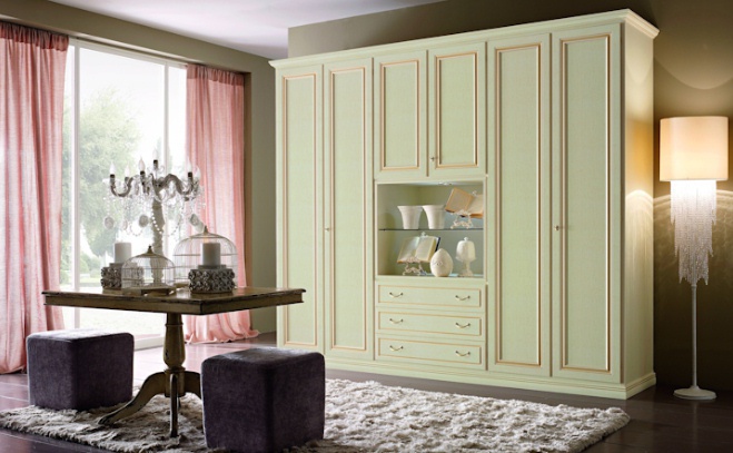 Modular system from Italian manufacturer San Michele. The frame is made from solid wood. Shelves made of glass. Finishing varnish from the company portfolio. Color - white. The model will perfectly complement the classic interior of the living room.