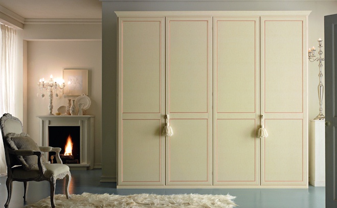 Wardrobe, from Italian manufacturer San Michele. The frame is made from solid wood. Finishing varnish from the company portfolio. Color - white. Handles with decorative tassels. The model will perfectly complement a classic bedroom interior.