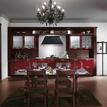 Kitchen (kitchen set) from the Italian manufacturer Scavolini, Baccarat the Frame is made of wood, 18 mm thick Shelves made of wood or glass. Side walls made from solid beech. The model includes the element and table: table and chairs. Colors - maroon and brown. Set is made in modern style.