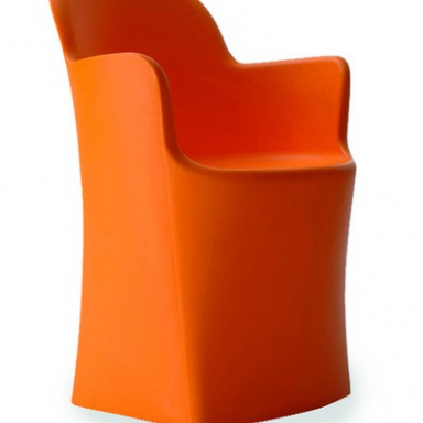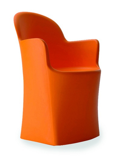 Gogola chair from the Italian manufacturer Sintesi. The base is made of steel tubes. Seat and backrest made of technopolymer. The table covers the legs. Colors - orange. The model is made in a modern style