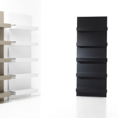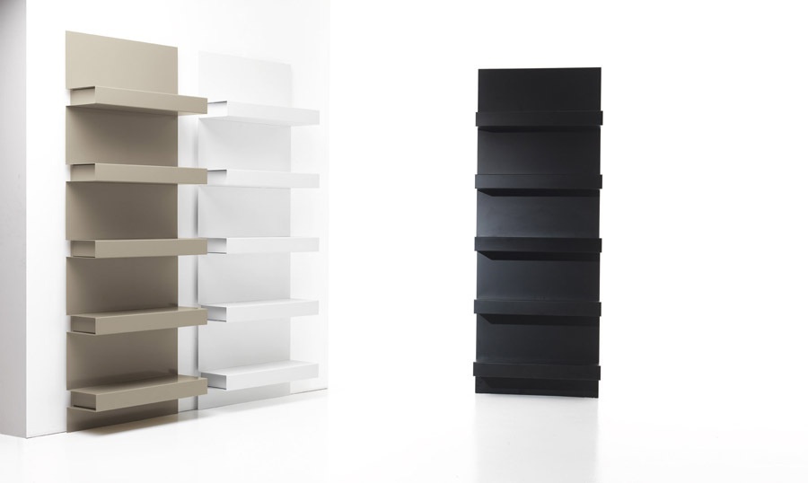 Rack Anaconda, from the Italian manufacturer Sintesi. the frame is made of steel. The finishing - varnish. Colours - white, brown and black. The model is attached to the wall. The rack is perfect for book lovers.