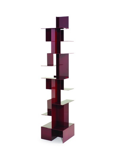 Rack Growing, from the Italian manufacturer Sintesi. the frame is made of steel. The finishing - varnish. Colours - Burgundy. Books can be placed across the diameter of the rack.