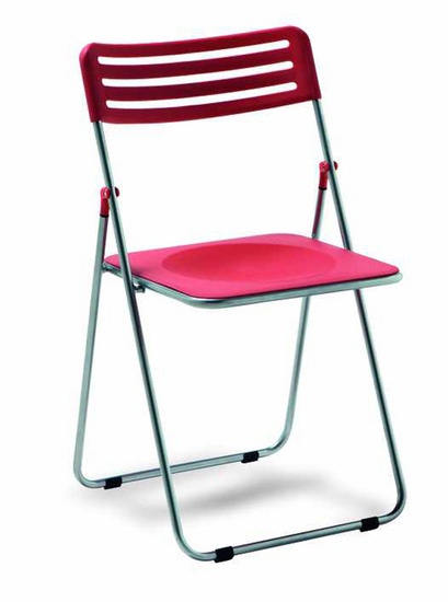 Nives chair from the Italian manufacturer Sintesi. The base is made of steel tubes. Seat and backrest made of technopolymer. Foldable model made in a modern style.