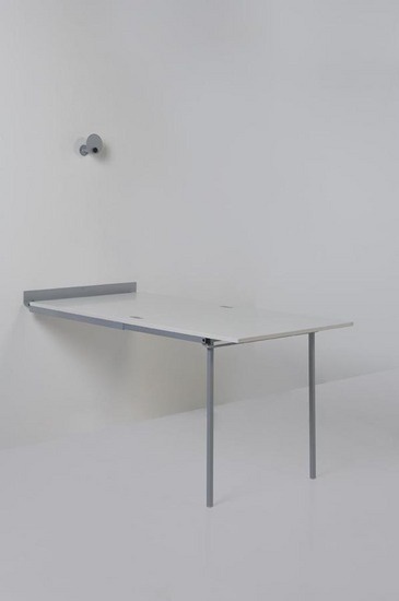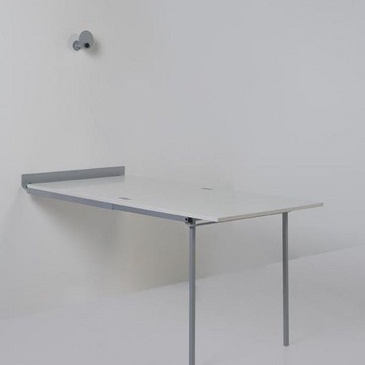 Table Pallo, from the Italian manufacturer Sintesi. The frame is made of metal. The table top is made of metal. The model is attached to the wall. The table is designed in modern style.