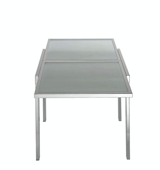 Dining table Tolomeo from Italian manufacturer Sintesi. The frame is made of metal. Table top - resin. Foldable model made in a modern style.