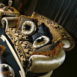 Sofa from Italian manufacturer Socci Anchise. The frame is made of solid wood of valuable breeds. Upholstery - textiles from the company portfolio. Filler - polyurethane foam. Sofa operetsja on the base of the tree. Massive arms wrapped. Style - Rococo.