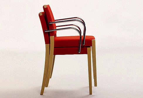 A chair from the Italian manufacturer Accademia. The frame is made from solid wood. The finishing - varnish. Seat and back upholstered in textiles from the company portfolio. The metal armrests. The model is made in a modern style.