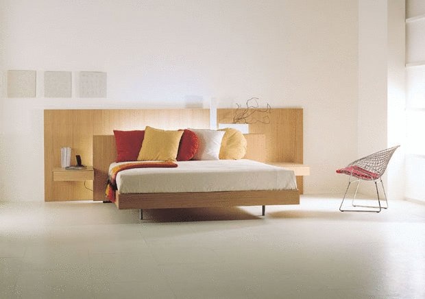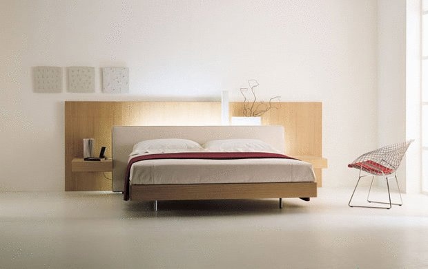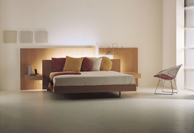 Lys double bed from Italian manufacturer Acerbis. The model on the frame and legs of steel. Offered lacquer finish grey or black. The headboard is made from MDF and veneered in the colour of natural wood. The feature of the bed and the additional comfort is created with built-in backlight.