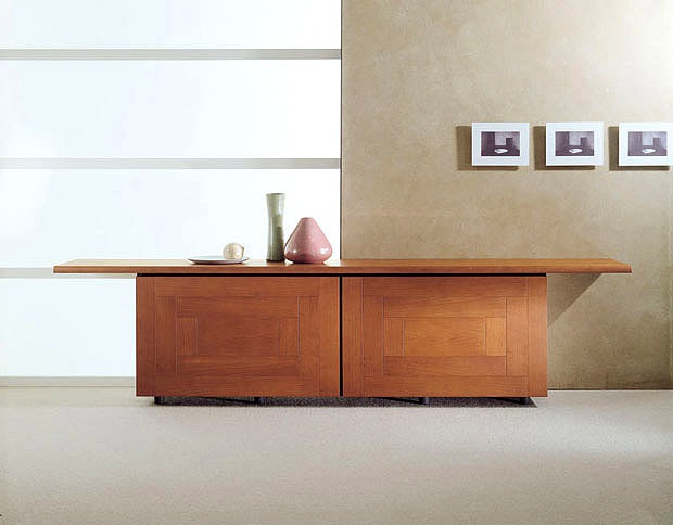 Sheraton nightstand from Italian manufacturer Acerbis. The model with two large swinging doors and a long top. Material - chipboard. Offered lacquer finish or veneer. Shelves made of transparent glass. The legs are easily adjustable and fitted caps. The Cabinet is made in classic style.