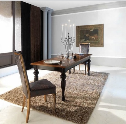 Dining table from Italian manufacturer Stella del Mobile. the frame is made from solid wood. The finishing - varnish. Legs - relief, decorative ball. Colours - natural and black.