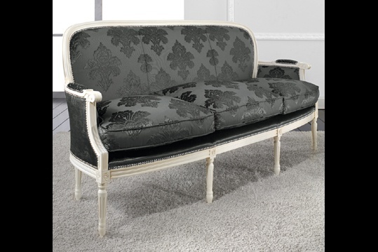 Double couch from the Italian manufacturer-Seven sedie perfectly. The frame is made from solid wood. The seat filler - foam, upholstery - textiles from the company portfolio. Colors - white and black. The armrests are complemented with soft pads.