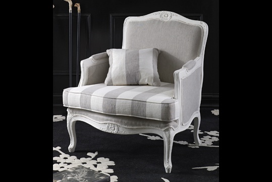 A chair from the Italian manufacturer-Seven sedie perfectly. The frame is made from solid wood. Upholstery - textiles from the company portfolio. Cabriole legs decorated with carved elements. Colors - white and gray fabrics. The finishing - varnish. The chair is made in a classic style.