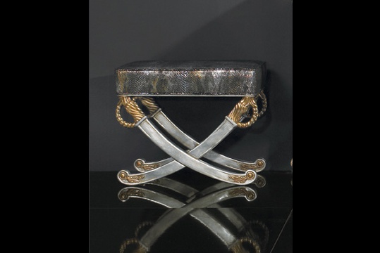 Stool from the Italian manufacturer-Seven sedie perfectly. The frame is made from solid wood. The seat filler - foam, upholstery - textiles from the company portfolio. The finishing - varnish. Colors - black and grey. the legs are made in the form of swords.
