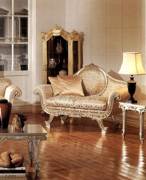 A double sofa from Italian manufacturer Silik. The model is made on a frame of wood. Upholstery - textiles from the company portfolio. The model is decorated with decorative carving handmade. The armrests are slightly wrapped. The model is made in classic style.