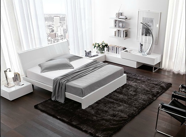 Set for bedroom Taglio from the Italian manufacturer Santa Lucia. Includes double bed with high headboard, two bedside tables and a dresser with drawers. Surface models a high gloss finish. Color scheme - white. Set perfectly fit and beautify the interior of your home.