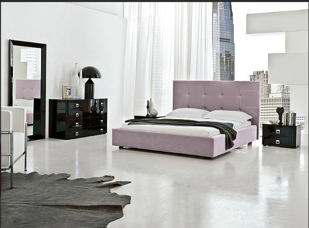 Headsets for Kuba bedrooms from Italian manufacturer Santa Lucia. Includes double bed with upholstered headboard, two bedside tables, mirror and dresser with drawers. Surface models a high gloss finish. The frame and headboard covered with leather. Colors to choose from a range of companies. Handles square shaped chrome-plated metal.