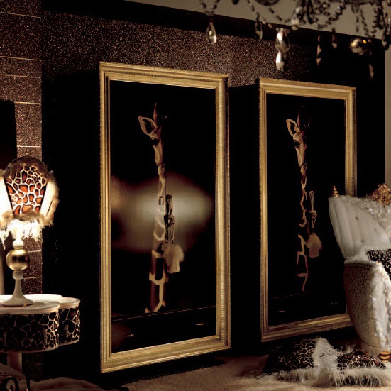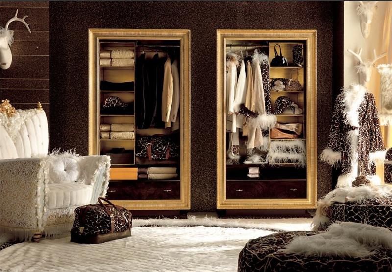 Wardrobe from the Italian manufacturer AltaModa. The upper portion of the model includes partitions with swinging doors. The lower part consists of two drawers. Material - solid wood. Finish offered with lacquer and gilding. The frame is richly decorated with carvings.