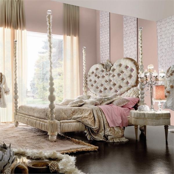 Lovely double bed from Italian manufacturer AltaModa. The model is made in a modern style. Material - solid wood. Colors to choose taking into account the wishes of the customer. Upholstery textile. A feature of the design is a headboard in the shape of a heart. The ornament serves as a decorative stitch-Capito.