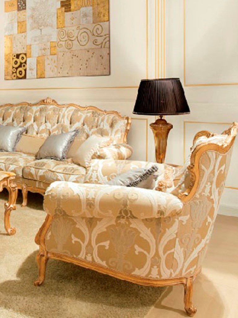 frame: solid wood upholstery: textiles upholstery: leather filler: polyurethane foam (SPF) frame: carved finish: gilding back: quilted |
