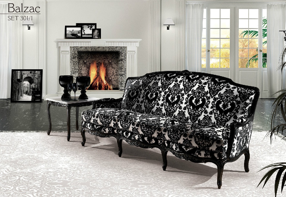 Balzac three seater sofa from Italian manufacturer Angelo Cappellini. The model on the curved legs of solid wood. Frame fully covered textiles from the collection of the company. The surface is processed by lacquer in black color. Decor - hand carved. The sofa is made in a classic style. Perfectly fit and beautify the interior of your home.
