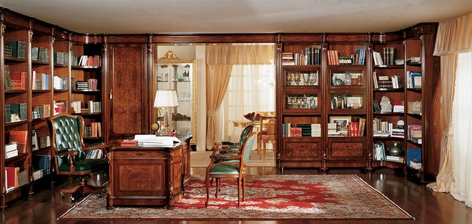Headsets for the office from the Italian manufacturer Antonelli Moravio. Includes Desk, Desk chair, chairs, sofa and modular storage system. Frames models made of solid wood. The surface is painted with lacquer from the company portfolio. Upholstery leather is decorated with stitch-Capito. The chair supplemented the wheels. Set made in a classic style.
