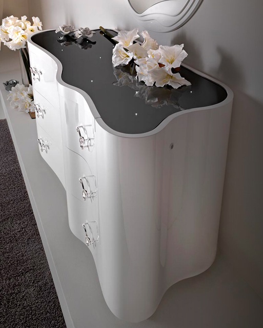 Headsets for bedrooms from Italian manufacturer Antonelli Moravio. Headsets are made in a modern style. Includes double bed, two bedside tables, chest of drawers and wardrobe. Material - solid wood. The white lacquer finish offers. Glazed doors closet. Pen boxes of metal. The model is notable for elegance and comfort. A great solution for your home interior.