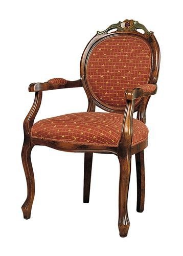 A chair from the Italian manufacturer Arcari. The frame and legs made from solid wood. The surface is treated with glossy varnish. Upholstery textile. Offers a wide range of color options. Seat in the form of a medallion decorated with a decorative carving. The model is available in two versions with or without armrests. The chair is made in a classic style.