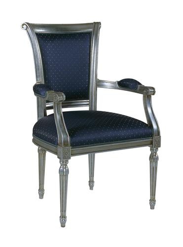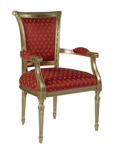 A chair from the Italian manufacturer Arcari. Model with a high carved legs. The finish is offered under the color of gold or silver. Seat and back upholstered. Upholstery textile from the company portfolio. Available version with armrests. Practical, comfortable and elegant is the perfect solution for your interior.