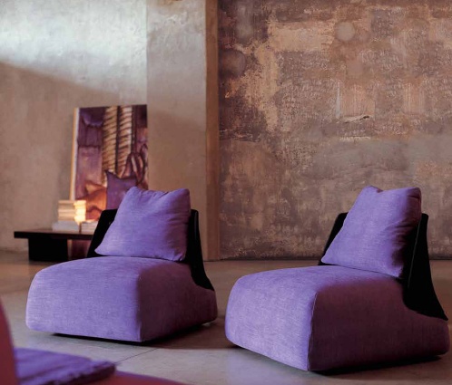 Armchair, from the Italian manufacturer Seven Salotti. The frame is made of wood. Upholstery - textiles. Colors - purple. The backrest is supported by a wooden frame. The model is made in modern style.