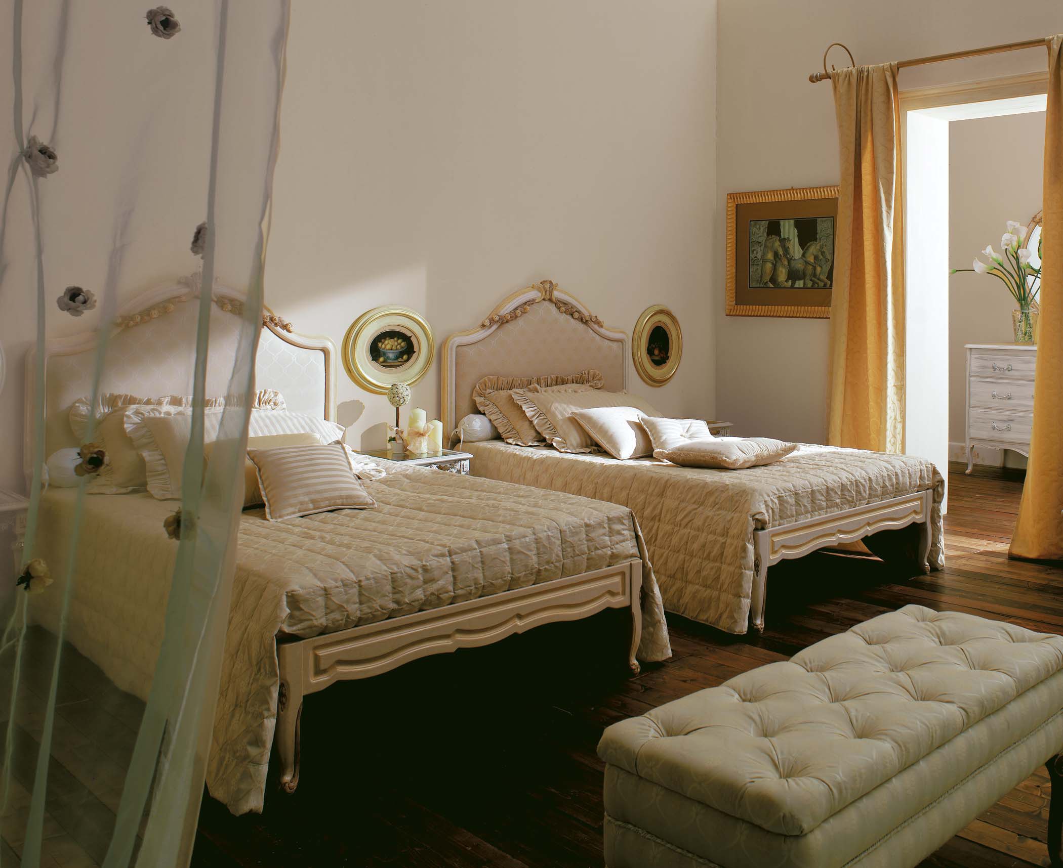 Set for bedroom Ambiente Notte from the Italian manufacturer Savio Firmino. Consists of a set of beds, a double and a single, bench with a niche for storage. Frame products made of solid wood. Upholstery - textiles from the company portfolio. Filler - polyurethane foam. Decor - hand carved, gold leaf. Colours in stock. Set made in a classic style.