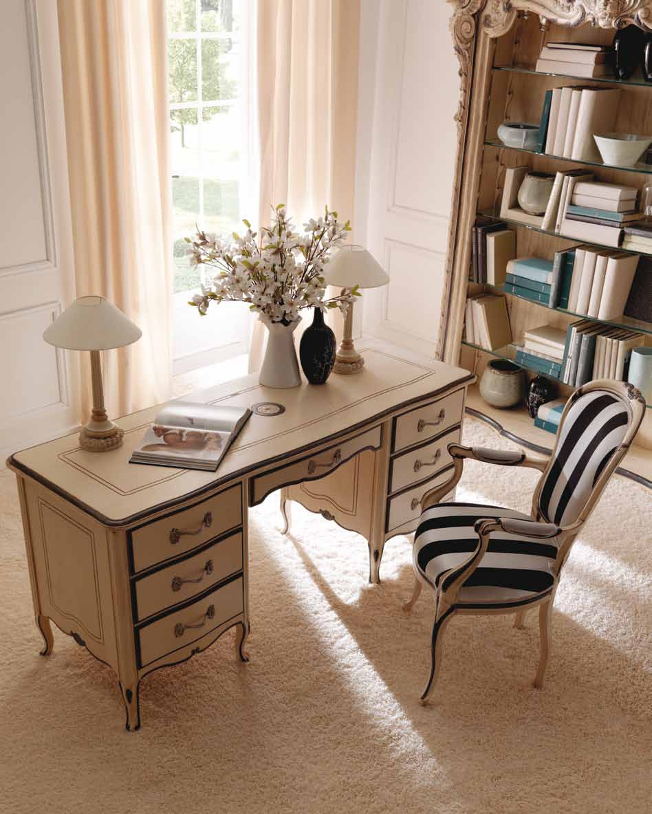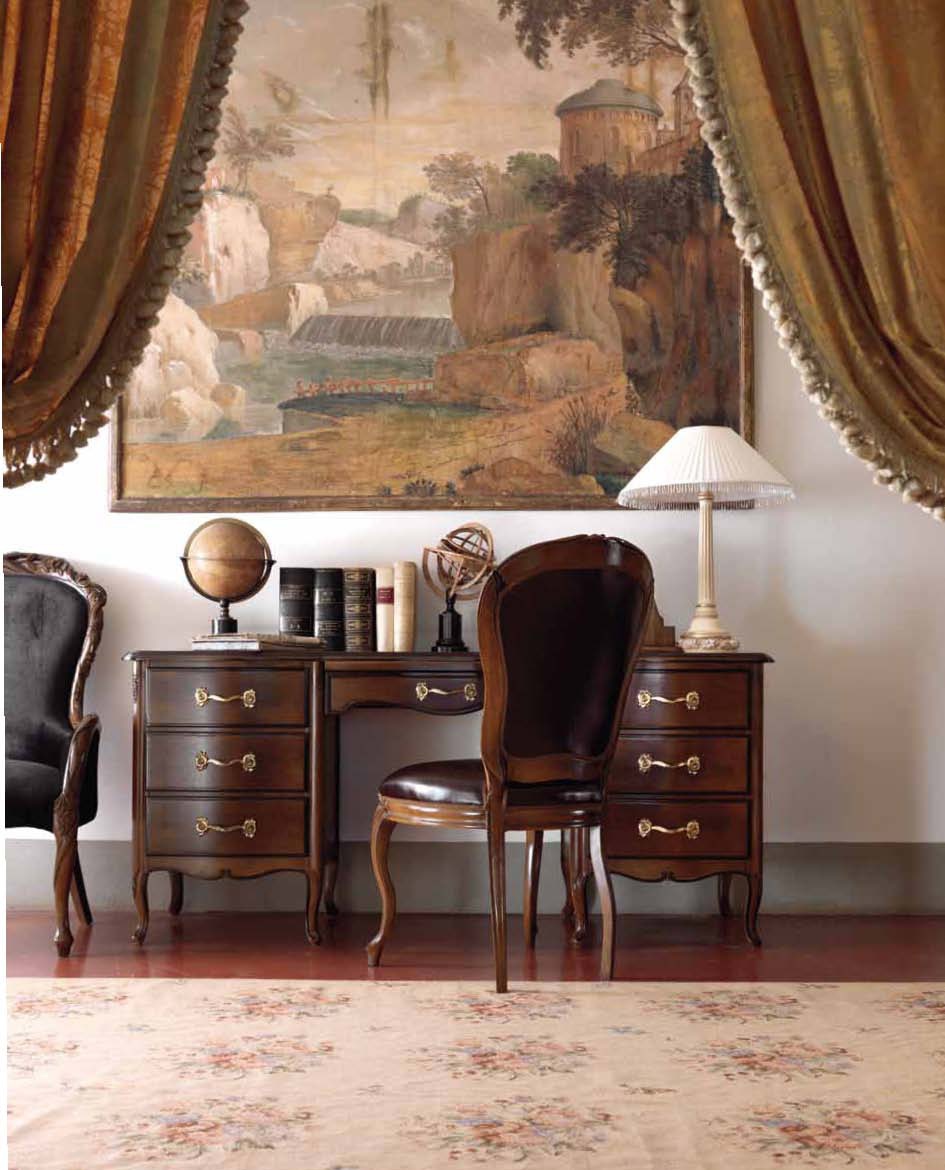 Desk Ambiente Notte from the Italian manufacturer Savio Firmino. The frame is made of wood. Finishing varnish from the company portfolio. Decor carved, covered with gold leaf. The product is equipped with 7 drawers. The model will perfectly complement the classic interior of the Cabinet.
