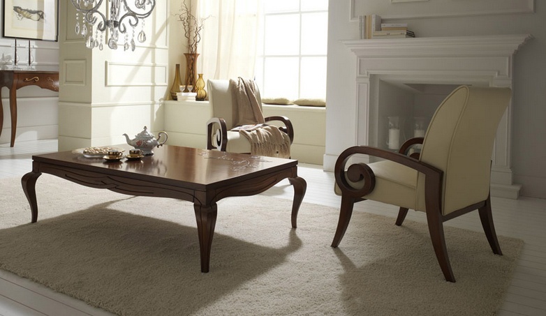 Coffee table from the Italian manufacturer at the stilema stand. The frame is done of solid wood. Finish - lacquer from a range of companies and carved decor. Colors - brown. The model is made in fusion style.