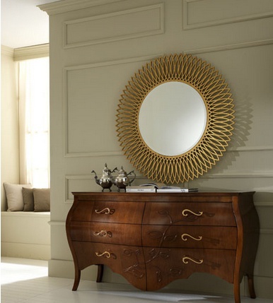 A chest of drawers from the Italian manufacturer at the stilema stand. The frame is made from solid wood. Finishing - varnish brown. The model consists of drawers with metal fittings painted in gold color.