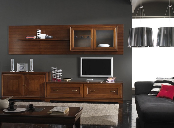 Modular system from Italian manufacturer at the stilema stand. The frame is made from solid wood. Finish the catalog of the company. The metal fittings of Golden color. The sash and glass shelves. The model is made in a modern style.