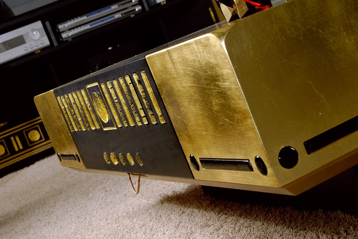 170 Ciaika coffee table from the Italian manufacturer Vismara. Low table with rectangular. In the center of the countertop - a series of round holes. Inside has compartments with hinged lids suggested to be used for placing CD / DVD. Possible finishes: black, gold leaf / silver. The model is decorated decorative accents Murano glass gold / silver color. Colours in stock.