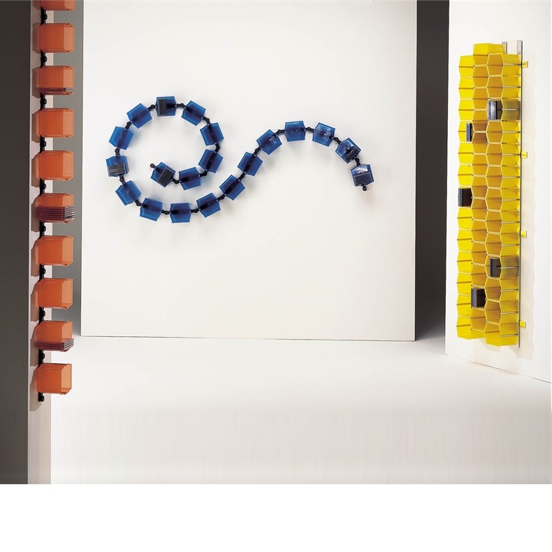 Isomero stand from Italian manufacturer Vismara. Adjustable base is made of nylon, the case is plastic. Design pozvolyaet from the available modules to create various compositions. A superb choice for any interior in modern style. Colours in stock.