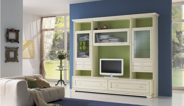 Modular system made of solid wood, from the Italian manufacturer at the stilema stand. The frame is made from solid wood. Finishing varnish from the range in the company. The model assumes that the section for books and a section for TV. Sections - open and closed. System perfectly complement the classic interior of the living room.