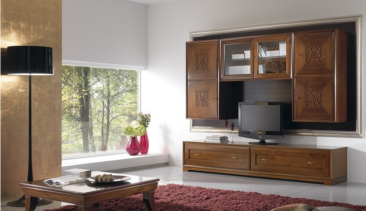 Modular system made of solid wood, from the Italian manufacturer at the stilema stand. The frame is made from solid wood. Finishing varnish from the company portfolio. The facade is decorated with inlay. System perfectly complement the classic interior of the living room.